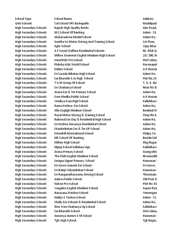 Schools Pan India Pdf School Types Educational Stages